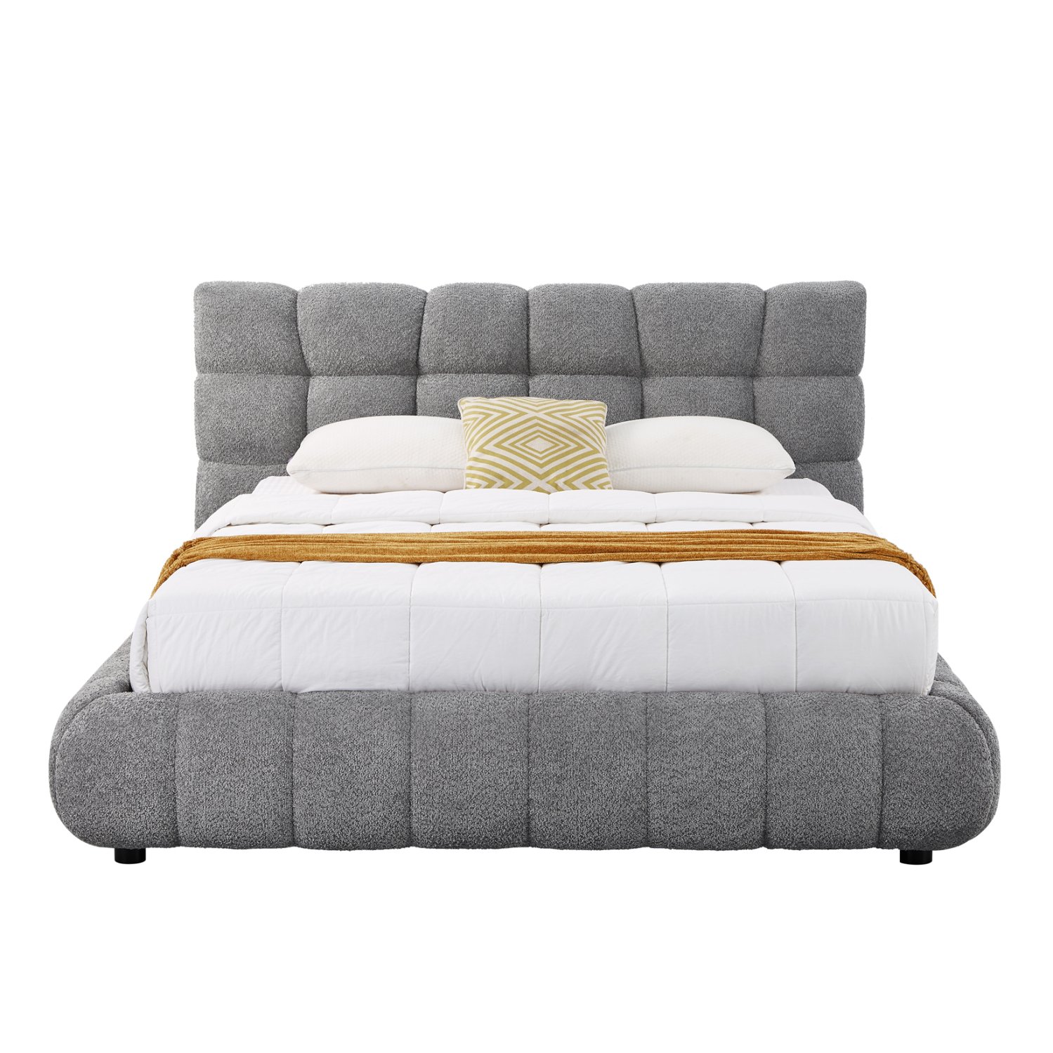 Η VERFO presents the new BUBBLE double bed. A bed that is the epitome of modern style in the bedroom. Upholstered in "warm" and luxurious Chenille fabric in GREY color and with a quilted style, it will be a point of reference.