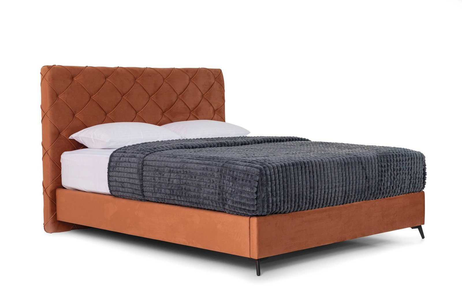 Comfort and luxury in a modern version. The impressive headboard with its geometric quilted pattern immediately becomes the focal point of the space.
