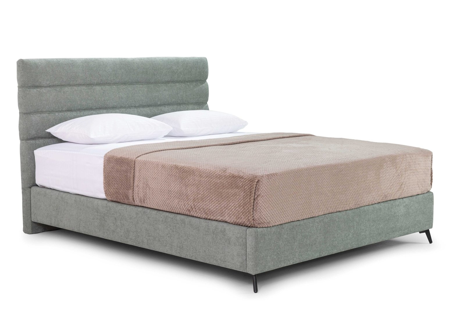 Elegance characterizes this design. The headboard with its subtle horizontal seams adds depth and a sense of modern class to the bedroom.