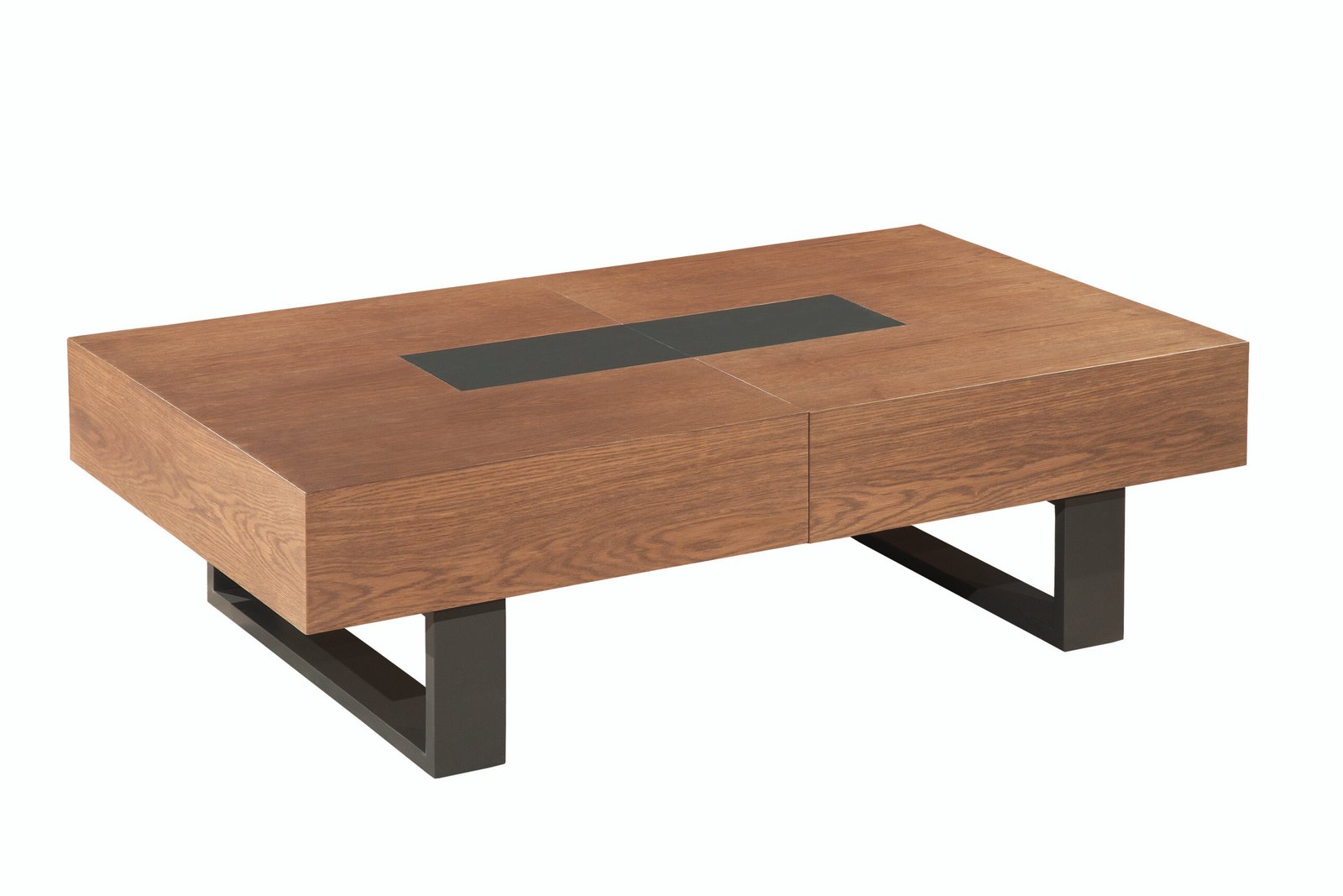 Coffee table in a rectangular shape, modern design, with a practical opening that reveals its storage space. On the coffee table, with a sliding lid, you can store useful things for your living room, while having direct access to them. Its base, consisting of two solid legs in metallic paint, gives your living room a more modern style.