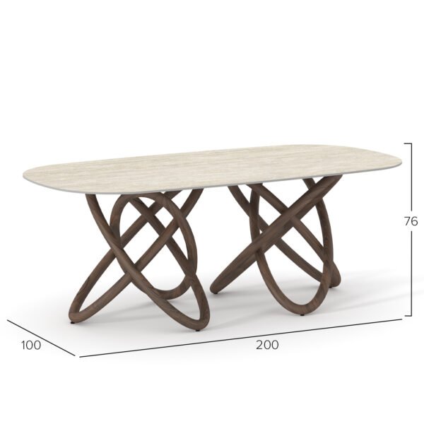 Ωστόσο, αυτό που αιχμαλωτίζει τα βλέμματα είναι τα πόδια του τραπεζιού, τα οποία είναι κατασκευασμένα από ξύλο σε καρυδί χρώμα, με design δακτυλίων, που ολοκληρώνουν την εικόνα και ενισχύουν την πολυτέλεια.