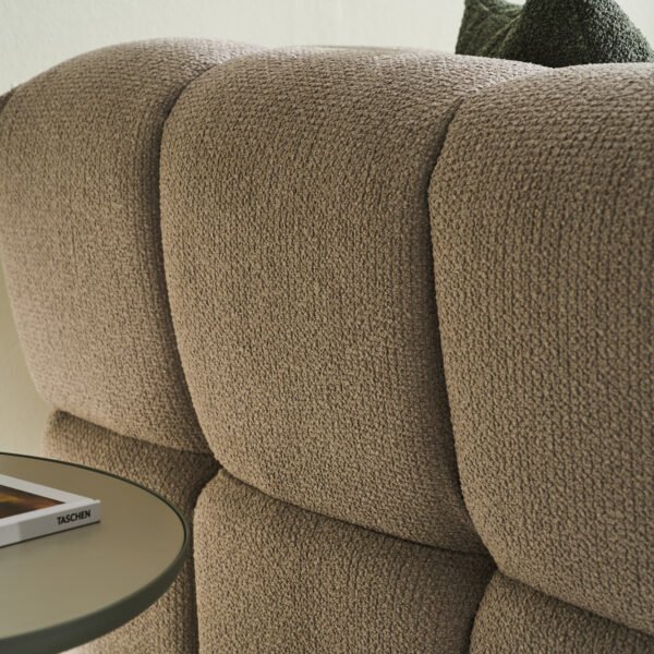 Ο γωνιακός καναπές BUBBLE είναι η τέλεια ισορροπία ανάμεσα σε πολυτέλεια, άνεση και μοντέρνα αισθητική. Το χαρακτηριστικό του απαλό καπιτονέ σχέδιο εκτείνεται αρμονικά σε όλη την επιφάνειά του – από την πλάτη και τα μπράτσα μέχρι το κάθισμα – δημιουργώντας μια αίσθηση αφράτης κομψότητας. Με βαθιά και φαρδιά καθίσματα που προσαρμόζονται στο σώμα, ο BUBBLE προσφέρει απόλυτη εργονομία, ενώ η δομή του εξασφαλίζει ανθεκτικότητα και σταθερότητα για καθημερινή χρήση. Οι γεμάτες, καλοσχηματισμένες καμπύλες του συνδυάζουν ένα σύγχρονο, μαξιμαλιστικό ύφος με την αίσθηση της ζεστής αγκαλιάς, κάνοντας τον ιδανικό τόσο για στιγμές χαλάρωσης όσο και για φιλοξενία φίλων και οικογένειας. Οι διακριτικές, αλλά επιβλητικές του γραμμές και η εκλεπτυσμένη υφή του υφάσματος δίνουν μια διαχρονική κομψότητα που μπορεί να προσαρμοστεί σε κάθε χώρο, είτε πρόκειται για μοντέρνο loft, ένα cozy σαλόνι ή ένα minimal περιβάλλον. Ο BUBBLE δεν είναι απλώς ένας καναπές – είναι μια εμπειρία πολυτελούς άνεσης που επαναπροσδιορίζει το στιλ και την ποιότητα.