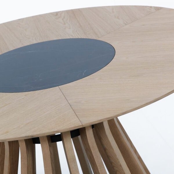 Το Cludo είναι ένα υπέροχο χειροποίητο, στρόγγυλο τραπέζι με βάση κατασκευασμένη από μασίφ ξύλο μέλιου. Επιλέξτε την επιφάνεια με κεραμικό ή ξύλο, ανάλογα με τι ανάγκες της εσωτερικής σας διακόσμησης. Κατάλληλο τόσο για οικιακή αλλά και για επαγγελατική χρήση.